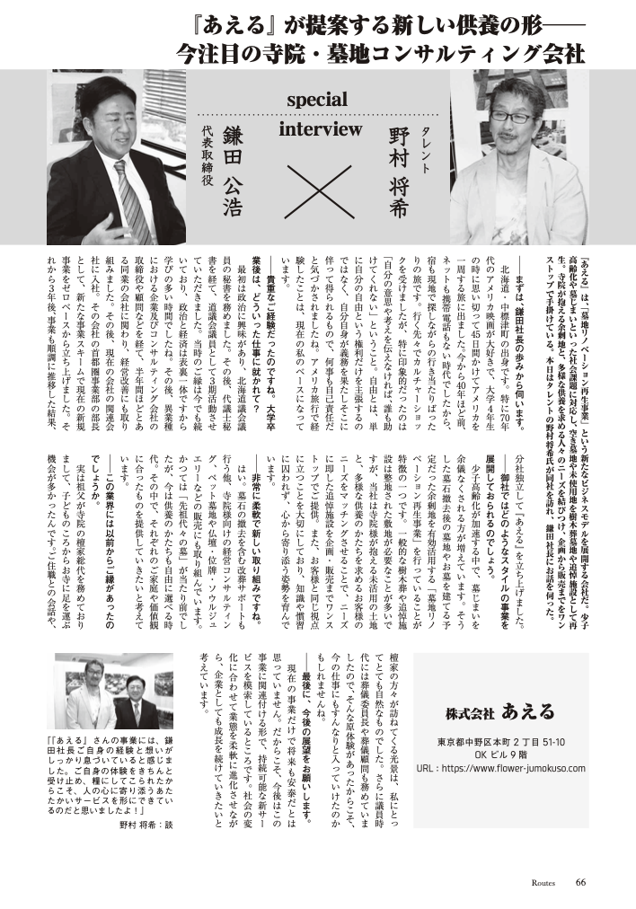 本日はタレントの野村将希氏が同社を訪れ、鎌田社長にお話を伺った。