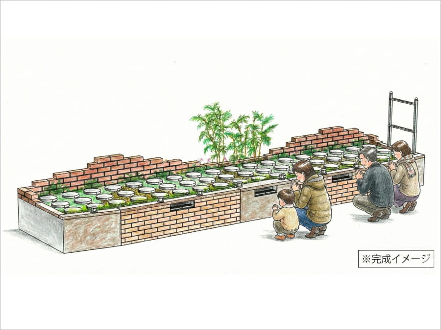 安心の50年間の個別納骨なので、他の方とすぐに一緒になることがございません。ご要望に応じて、50年の個別納骨期間を延長することも可能です(詳細ご相談ください)。また、1区画に1霊~4霊まで納骨ができ、ご遺骨はケースに保護されて筒の中に埋葬されます。
