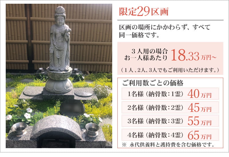 全29区画のうち、現在は【3霊区画】のみのご案内しております。(※4霊区画はたくさんのご縁をいただき、ご案内を終了いたしました。)